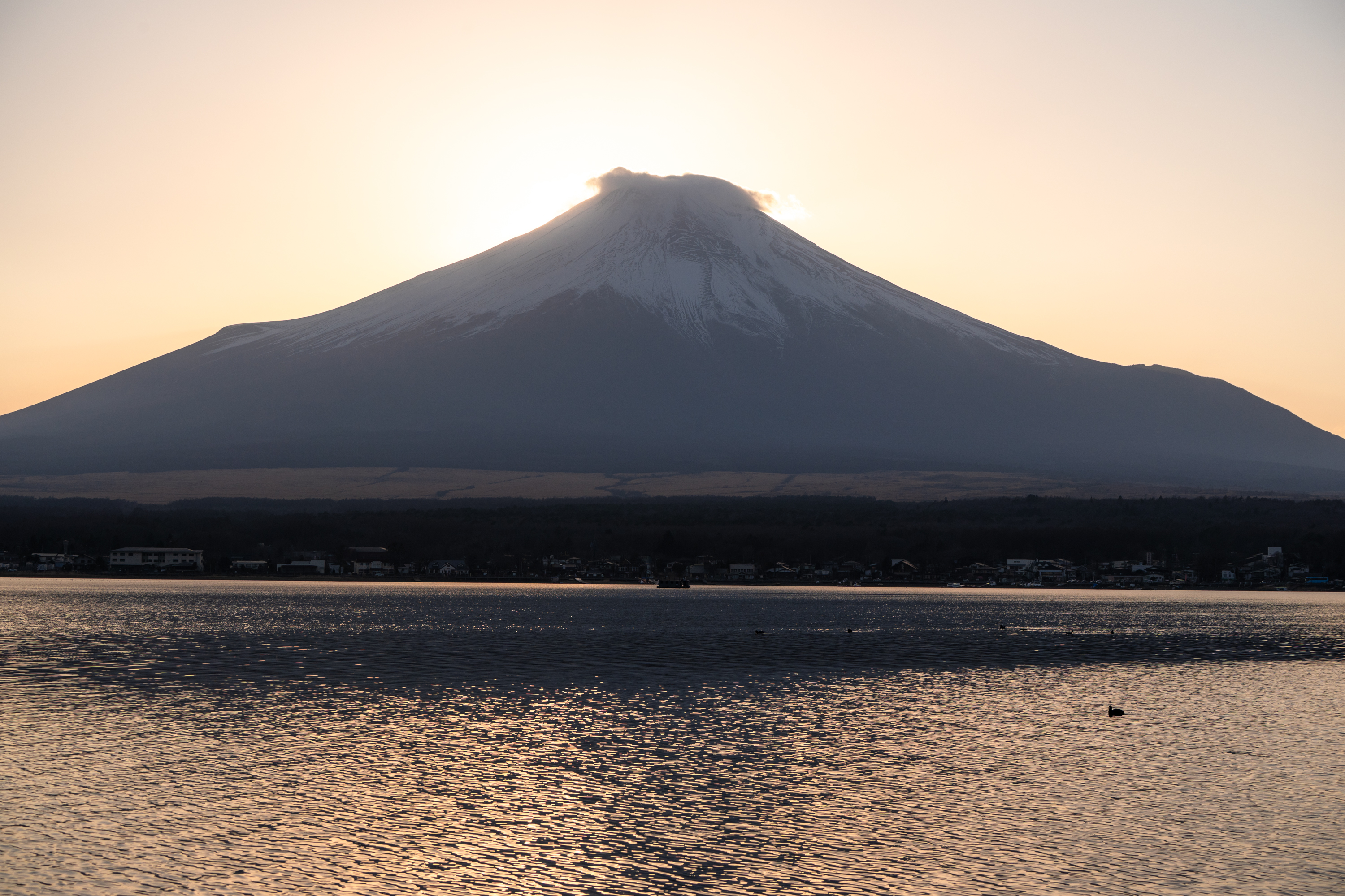 이른 해가 후지산 뒤로 넘어갔을 때의 풍경이 가장 아름다웠습니다. 산을 중심으로 퍼져 나가는 노을과 붉게 물든 호수, 일렁이는 물결까지. 그 때 망원 렌즈로 정상을 선명하게 찍을 수 있어 좋았습니다. 가와구치코에 가시면 시간 내서라도 꼭 야마나카호는 가 보시길. 추천합니다.