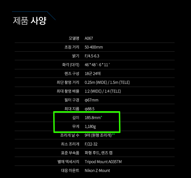 탐론 50-400mm F/4.5-6.3 Di III VC VXD A067 for Nikon Z-Mount | 썬포토