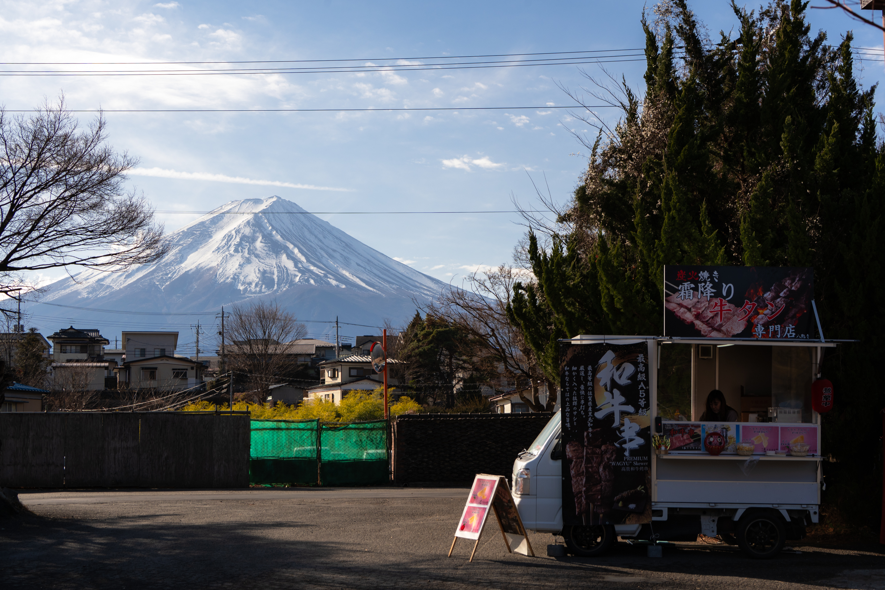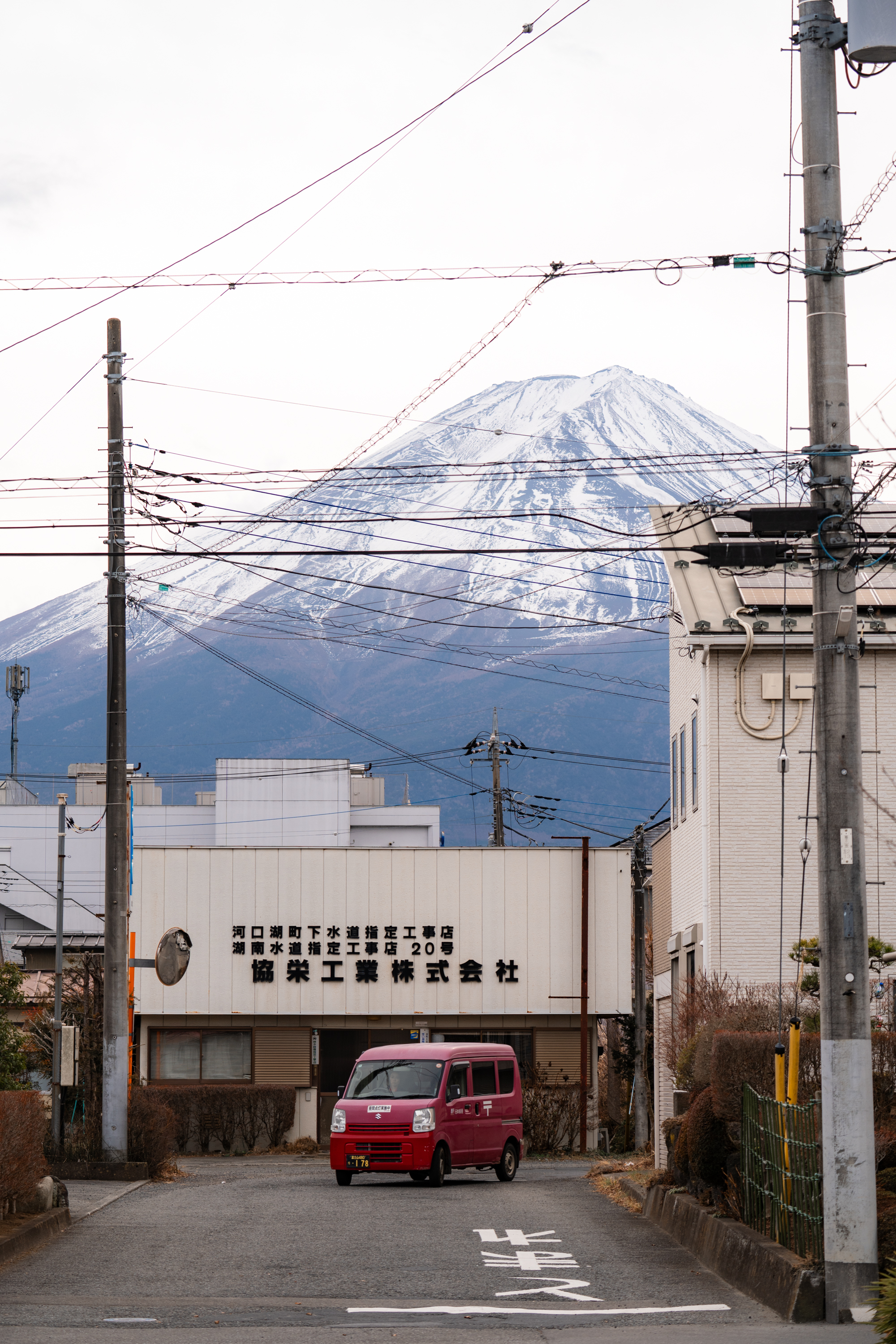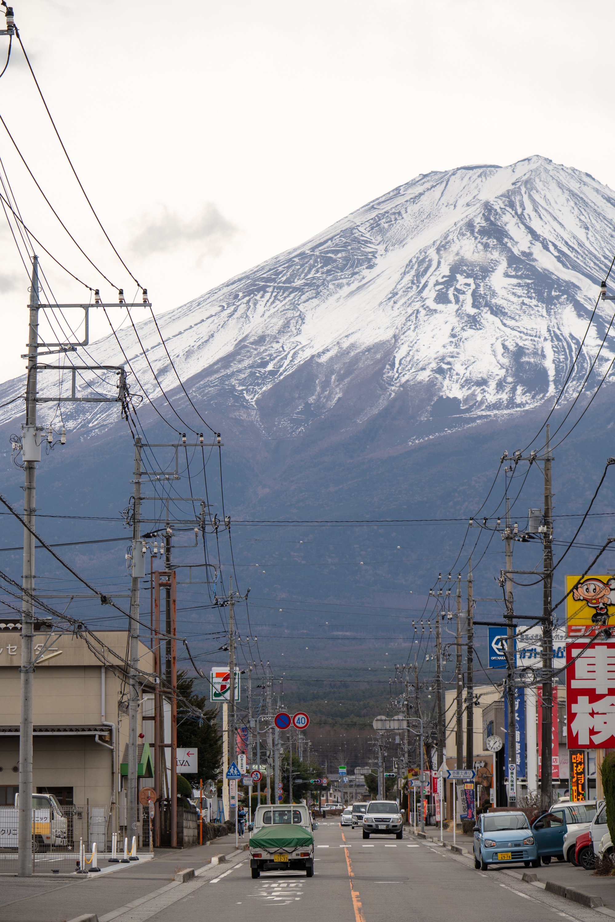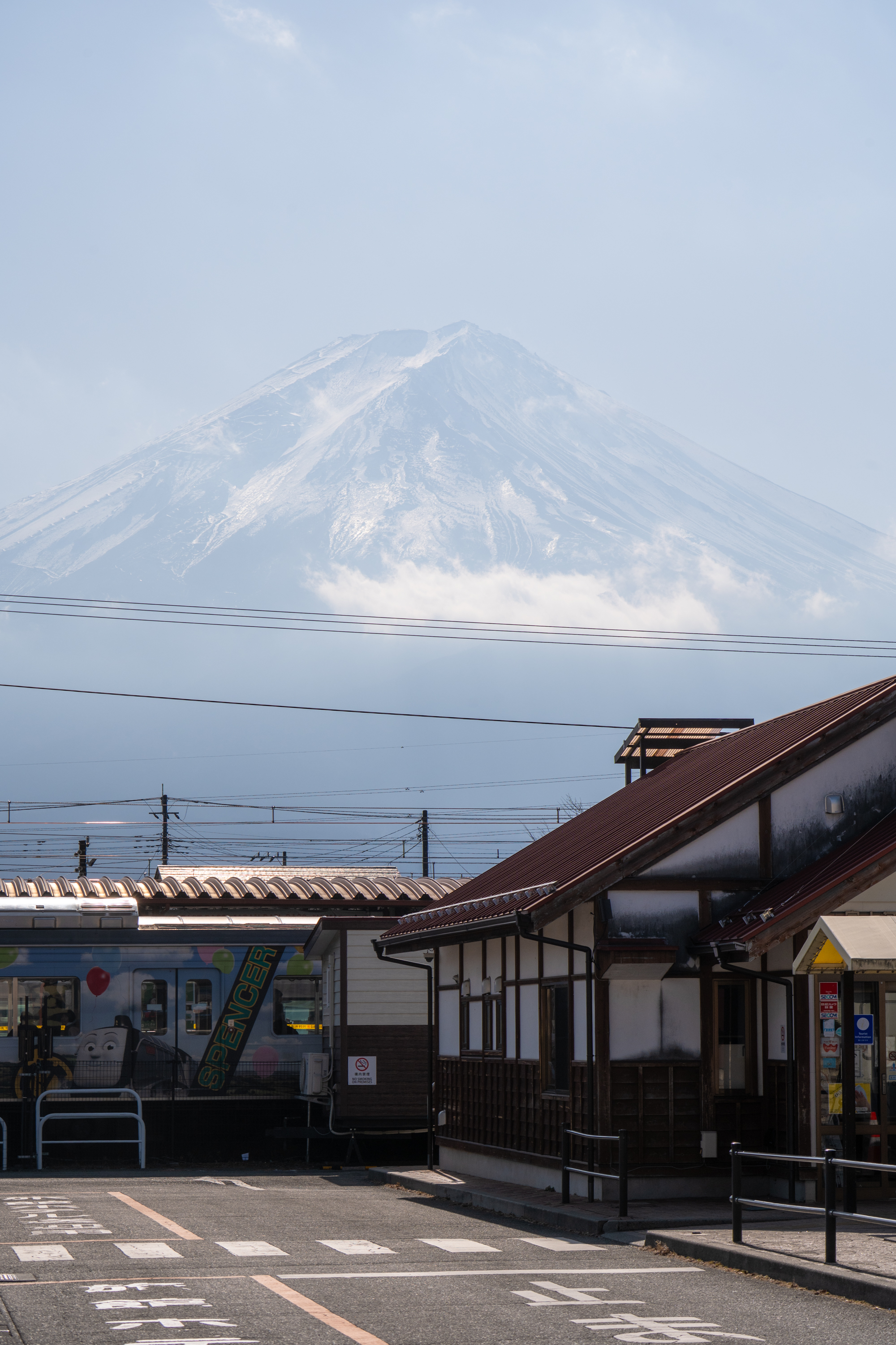 가와구치코 역에 내리자마자 볼 수 있는 유명한 로손 편의점. 건물 뒤로 후지산이 겹쳐 보이는 뷰가 인기를 끌면서 이 동네를 찾는 관광객들의 포토 스팟이 됐습니다. 저도 가와구치코에 관한 정보를 검색할 때 가장 많이 본 장면이고요. 역시나 사진 속 낭만은 현실에 없었지만 편의점 뒤로 보는 거대한 산이 가슴을 두근거리게 했어요. 전날 밤까지 일기 예보를 보면서 걱정 많이 했거든요. 이틀 내내 흐리다고 해서. 다행히 이날 내내 선명한 후지산의 모습을 볼 수 있었습니다.
