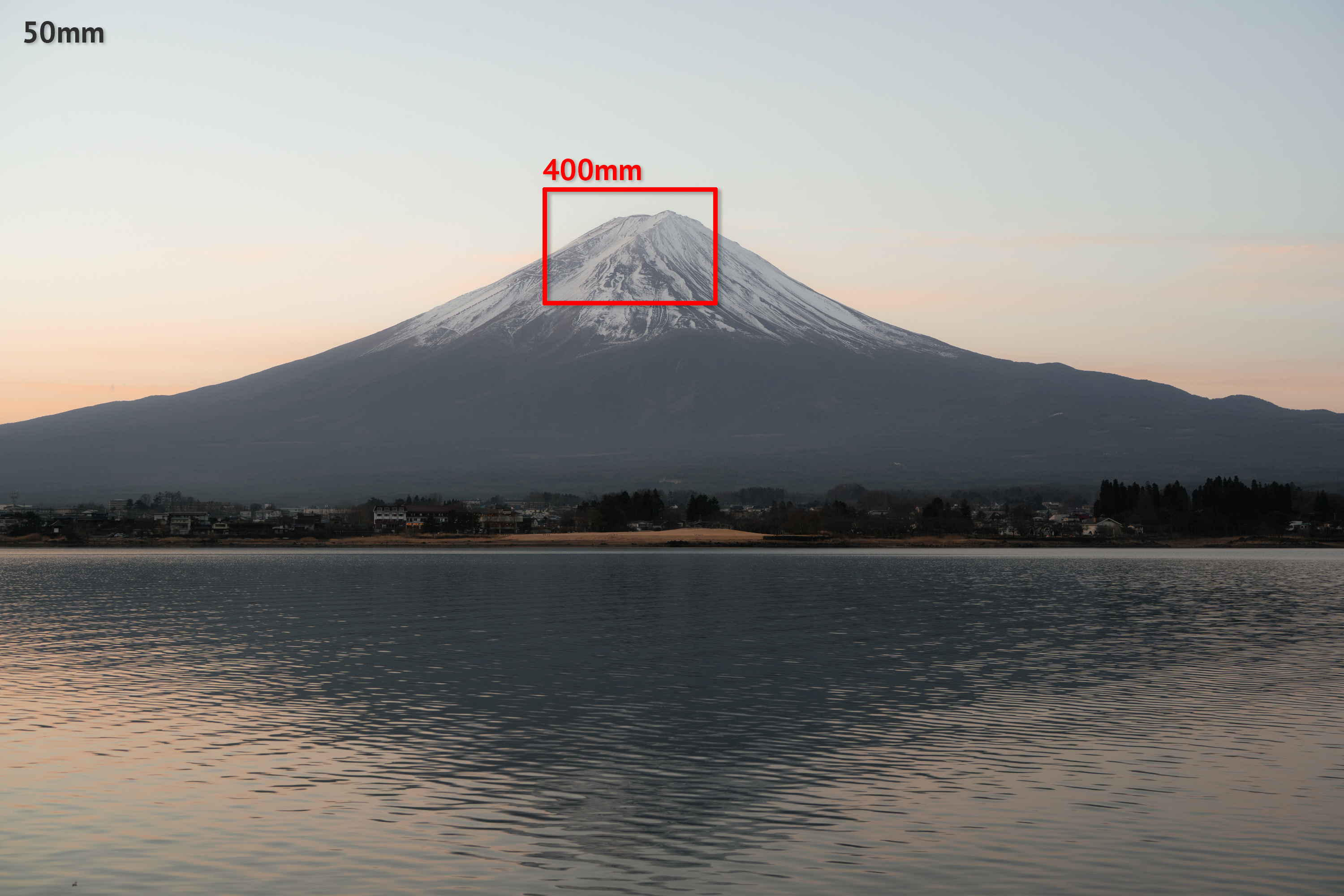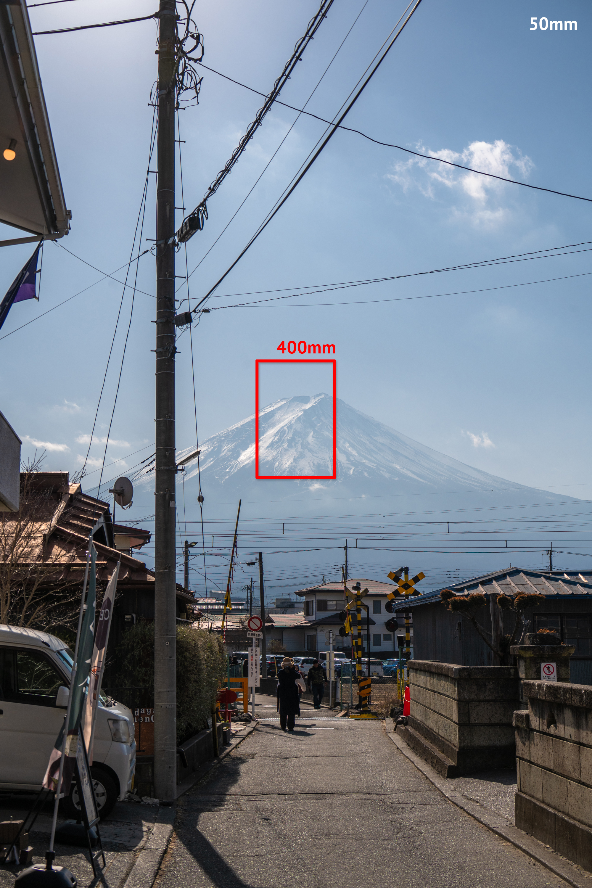 아래는 50mm와 400mm 촬영 결과물을 비교한 것입니다. 후지산 정상을 생생하게 담을 수 있는 것도 좋았지만 같은 장소에서 완전히 다른 장면을 담을 수 있는 것이 더 마음에 들었어요.