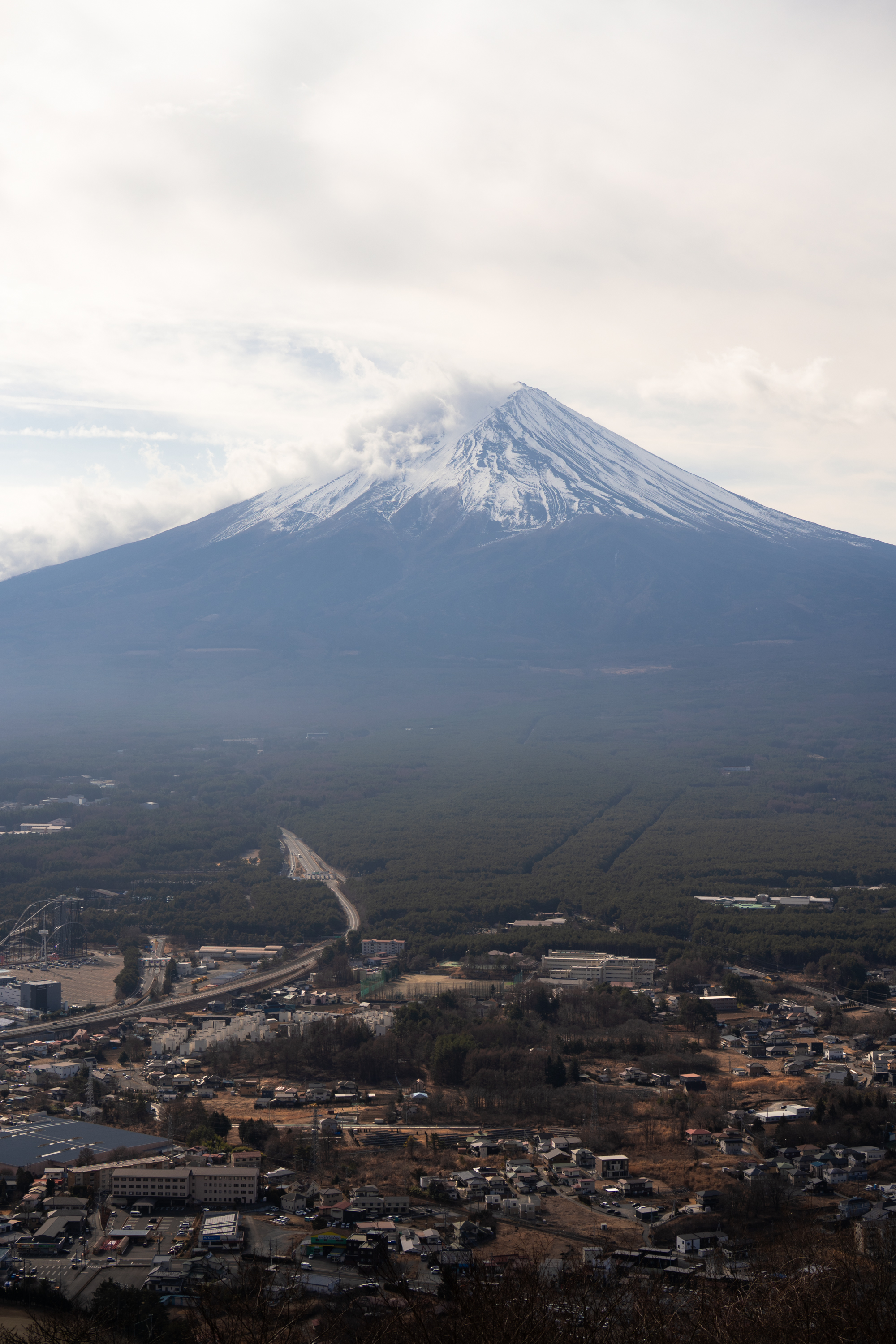이 전망대의 매력은 후지산 아래 펼쳐진 도시 풍경을 함께 볼 수 있는 것, 전망대를 빙 둘러 주변을 파노라마 뷰로 감상할 수 있는 것입니다. 둘째날은 점점 구름이 많아졌지만 구름이 내려 앉은 후지산의 모습도 운치 있었습니다. 데크와 의자도 있어서 한참 앉아 쉬었어요.