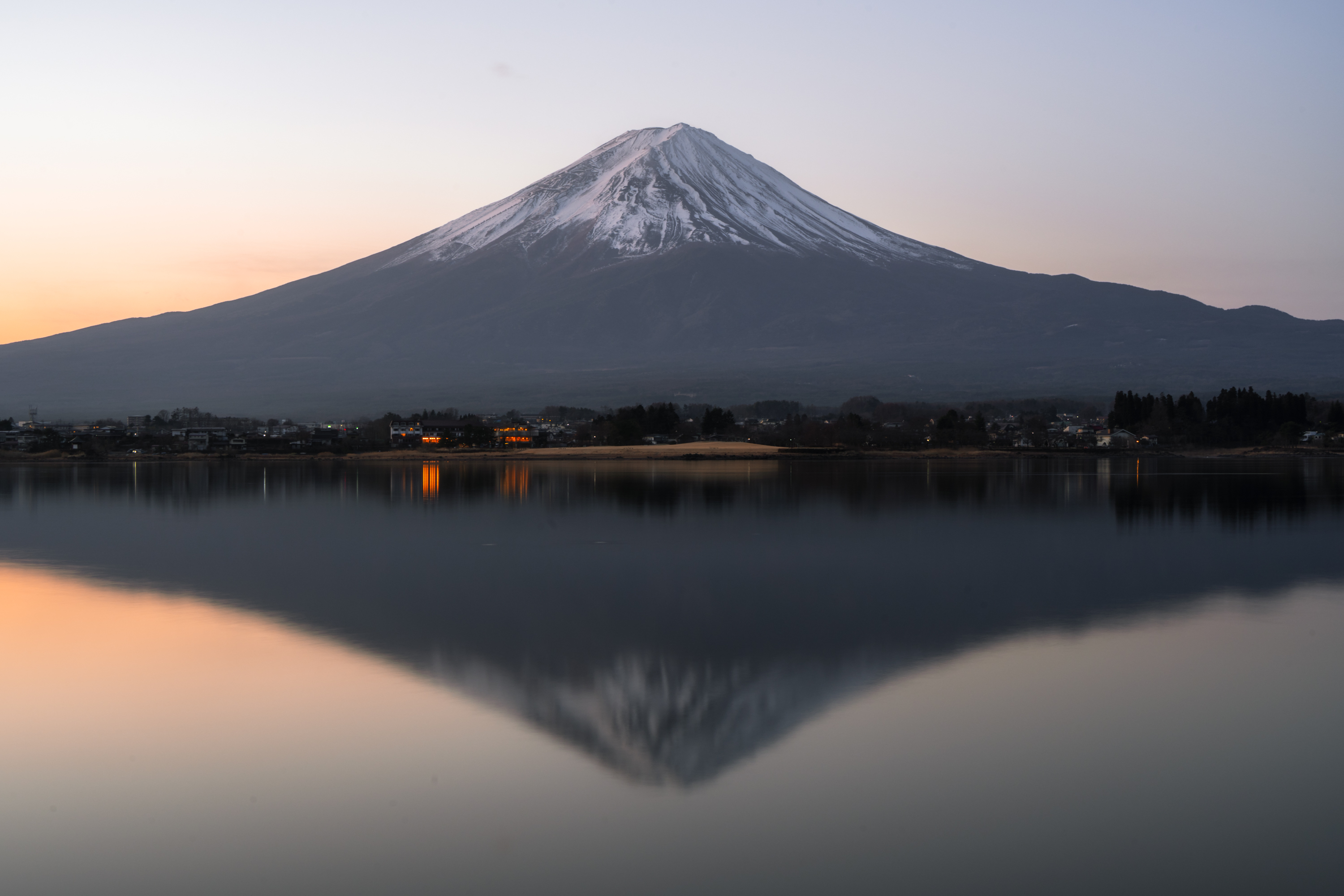 가와구치코 역에서 가장 가까운 호수로 많은 분들이 후지산 관람과 사진 촬영을 위해 찾는 곳입니다. 저는 일출을 보기 위해 새벽 다섯 시쯤 숙소에서 나왔어요. 반영을 볼 수 있는 포인트까지 한 시간 가까이 걸어가야 했거든요. 오이시 공원이 가장 유명한데 저는 그 전에 있는 나가사키 공원에서 촬영했습니다. 새벽이라 물이 잔잔해서 꽤나 아름다운 반영 사진을 찍을 수 있었습니다. 이같은 풍경에는 28-75mm F/2.8 DI III VXD G2의 28mm 광각이 더 적합하겠지만 50-400mm F/4.5-6.3 Di III VC VXD 렌즈의 50mm 결과물도 만족해요.